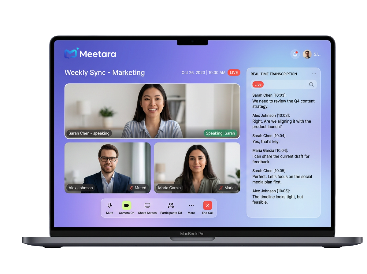 Meetara automatically records your meetings, converts speech into real-time text, and identifies speakers with high accuracy.
