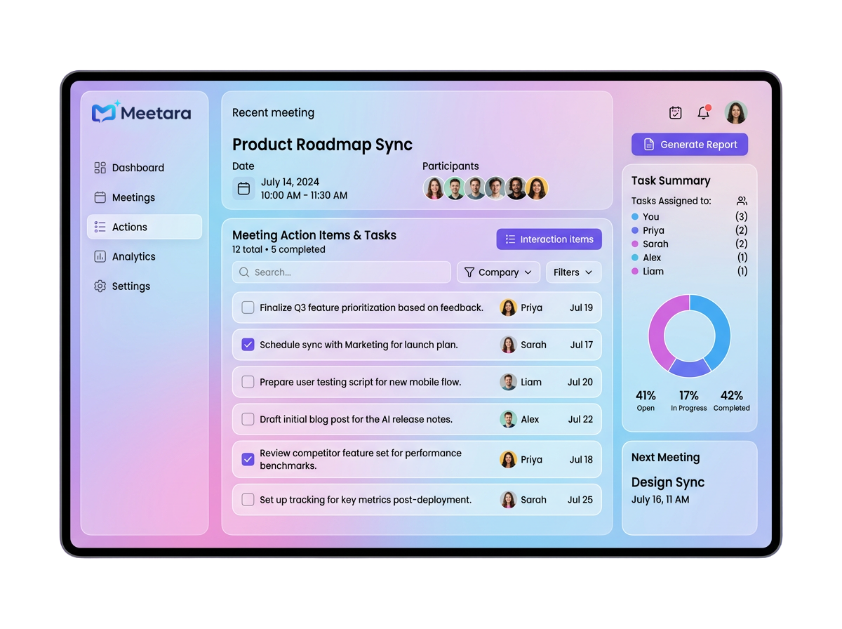Automatically extract tasks and decisions from your meetings and turn them into actionable items.
