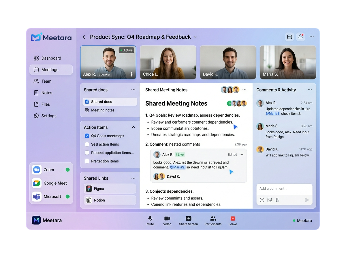 Integrate Meetara with Zoom, Google Meet, or Microsoft Teams. Start recording your meetings automatically without any manual setup.